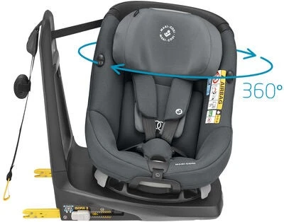 Maxi-Cosi Axissfix er en sikker og testet bilstol til barn i alderen 4 mnd til 4 år (fra 61-105 cm / 9-18 kg). Bilstolens A.S.B.-system (Automatic Safety Belt) sikrer at basen og stolen alltid er koblet riktig sammen. Maxi-Cosi Axissfix kan roteres i 360 grader, slik at du enkelt kan plassere barnet i stolen. Axissfix monteres bakovervendt med ISOfix fram til barnet er cirka 2 år gammelt (87 cm). Etter dette er den framovervendt ISOfix-montert og Top Tether. Stolens størrelsesindikator viser tydelig når det er på tide å bytte fra bakovervendt til framovervendt montering. Maxi-Cosi Axissfix er ADAC-testet i 2015. Stolen er dessuten i-Size-godkjent (R129), og oppfyller de nyeste sikkerhetskravene for bilstoler. OBS! Jollyroom anbefaler alle kunder å følge Trygg Trafikk og deres anbefalinger om at barn skal sitte bakovervendt opp til 4-5 års alder. En del stoler på markedet kan ha europeisk godkjennelse til å vendes tidligere, men barnet sitter alltid sikrest bakovervendt!